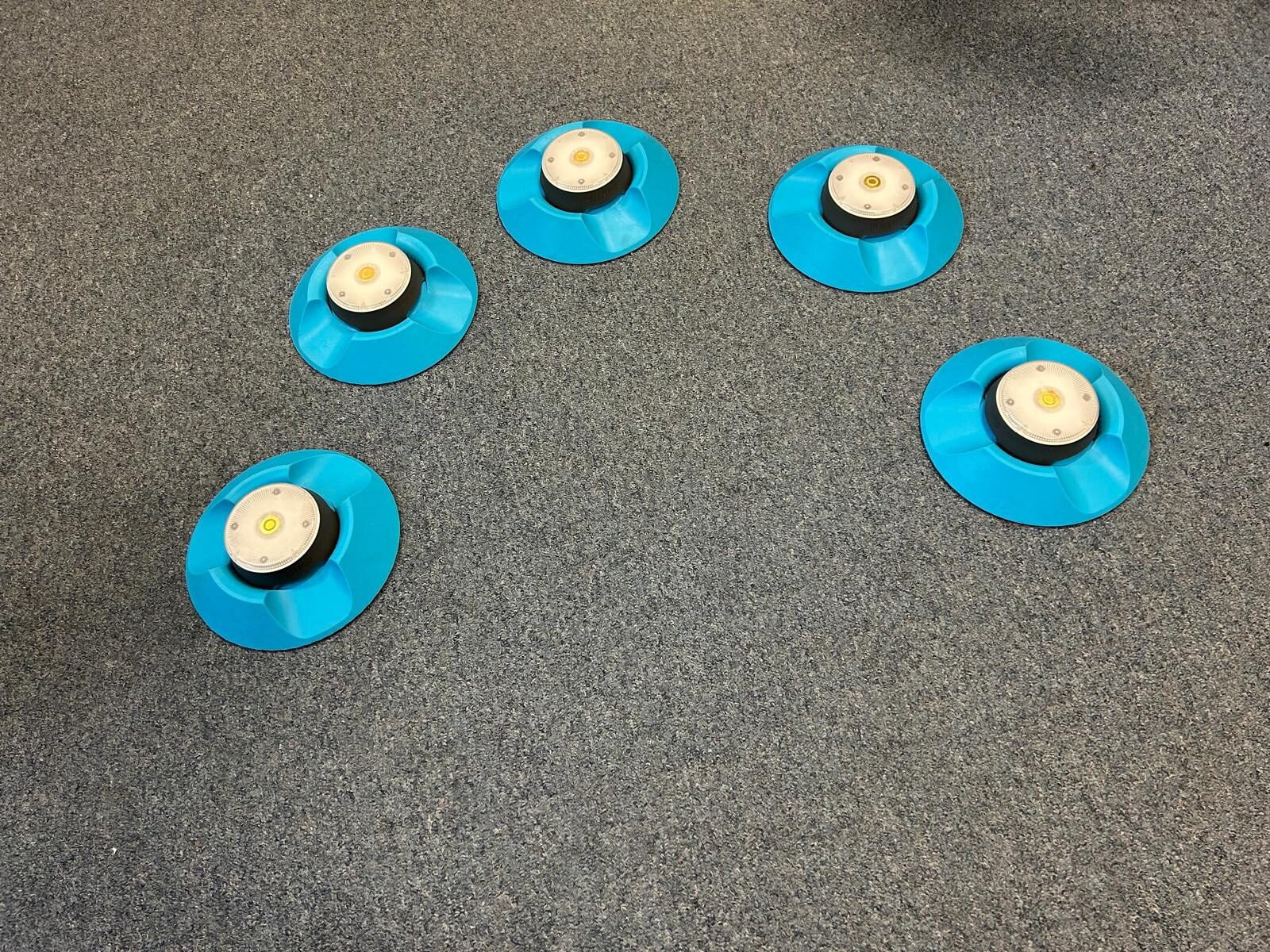 “The pods can be used on the floor or suctioned to tables or walls, indoors and out, allowing them to be used for upper limb rehabilitation, movement, co-ordination and balance retraining – and work on attention and information processing.”