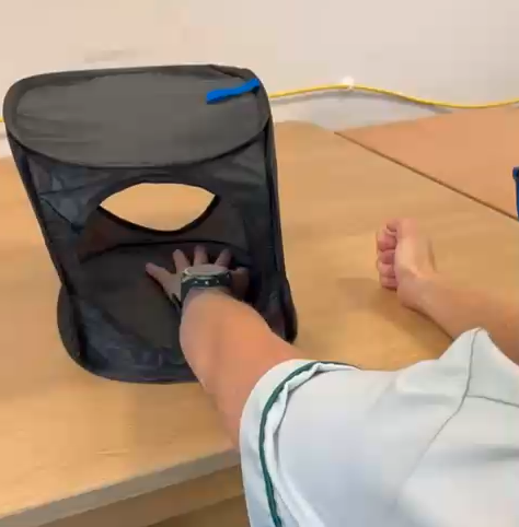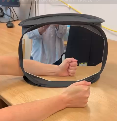 - A second set of Mirror boxes – the use of this rehab device at a fairly early stage of treatment has been very successful in helping stroke patients and those with other neurological problems, as well as pain. The patient is asked to place an affected limb into a mirror box, then use the matching unaffected limb (foot, arm, hand) outside the box to make movements. The mirror is positioned so it is the reflection that creates the illusion that the limb is actually moving successfully, and the patient then attempts to move it in the same way.